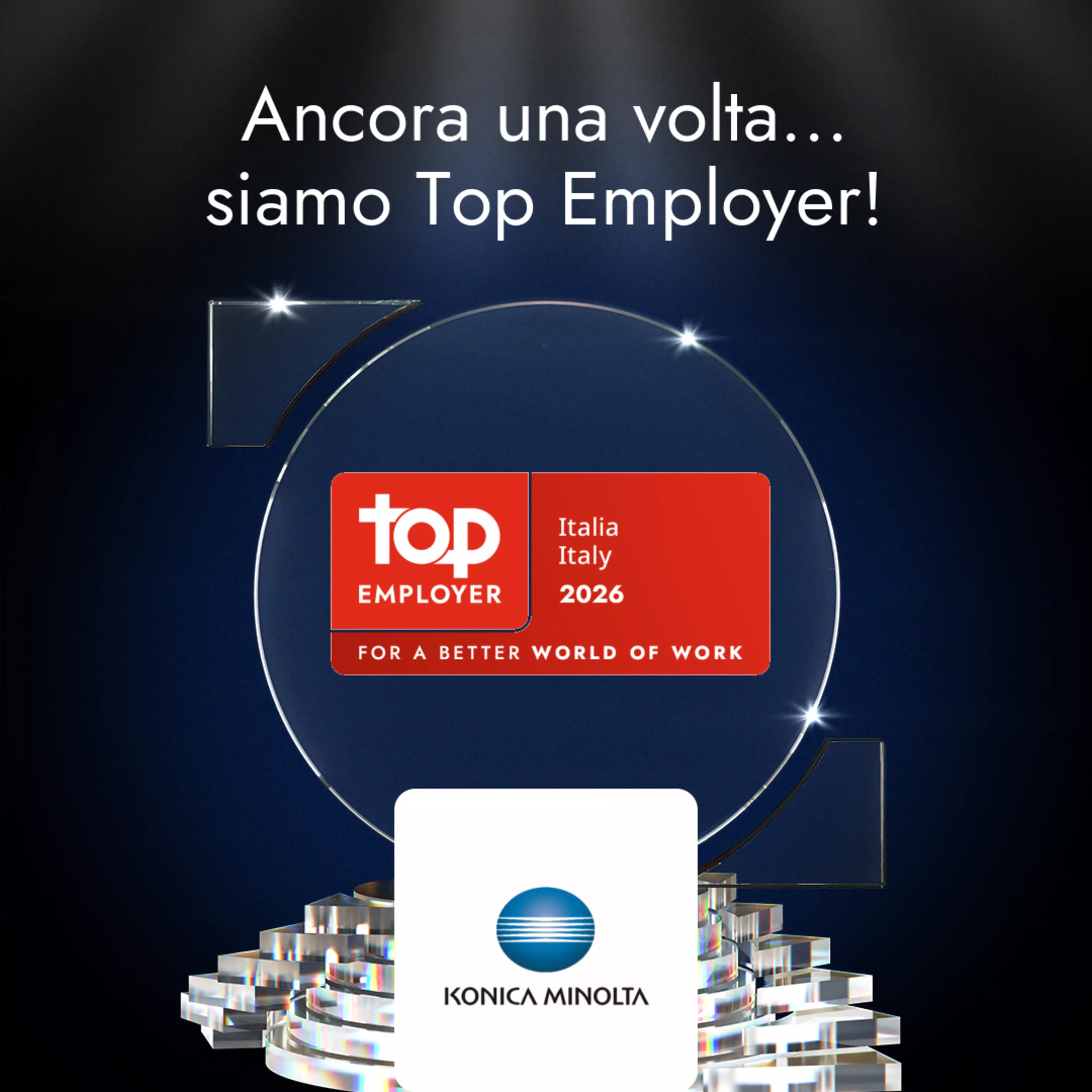Konica Minolta Business Solutions Italia S.p.A. è stata ufficialmente certificata Top Employer Italia 2026 da Top Employers Institute.